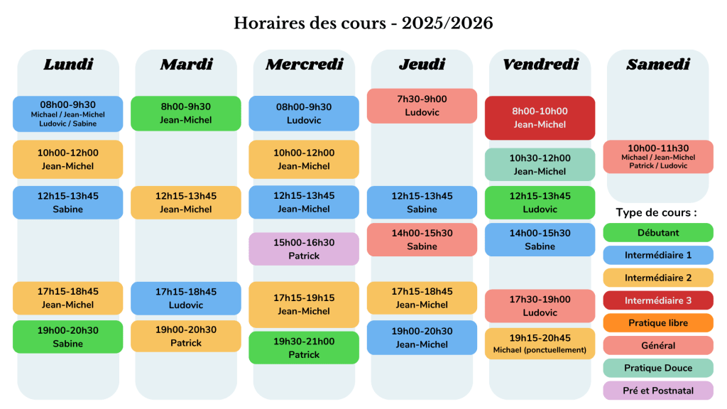 - Formule 2 cours par semaine (réservée aux adhérents de niveau intermédiaire) ;